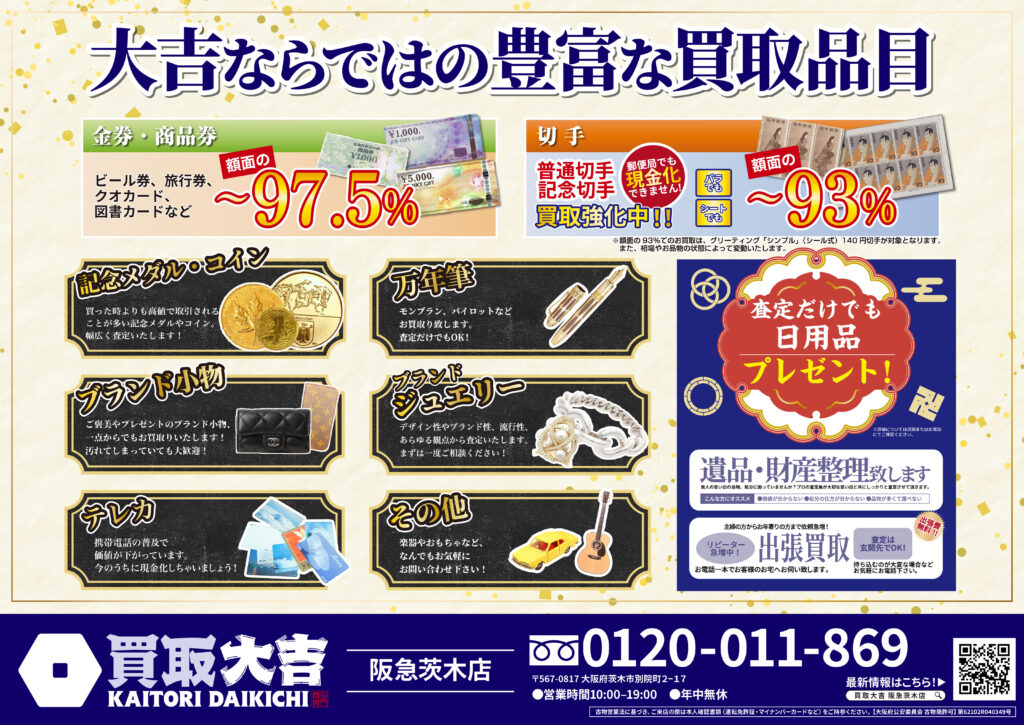 金・貴金属・ブランド品はもちろん、お値段がつくか迷われているものも是非お持ちください。